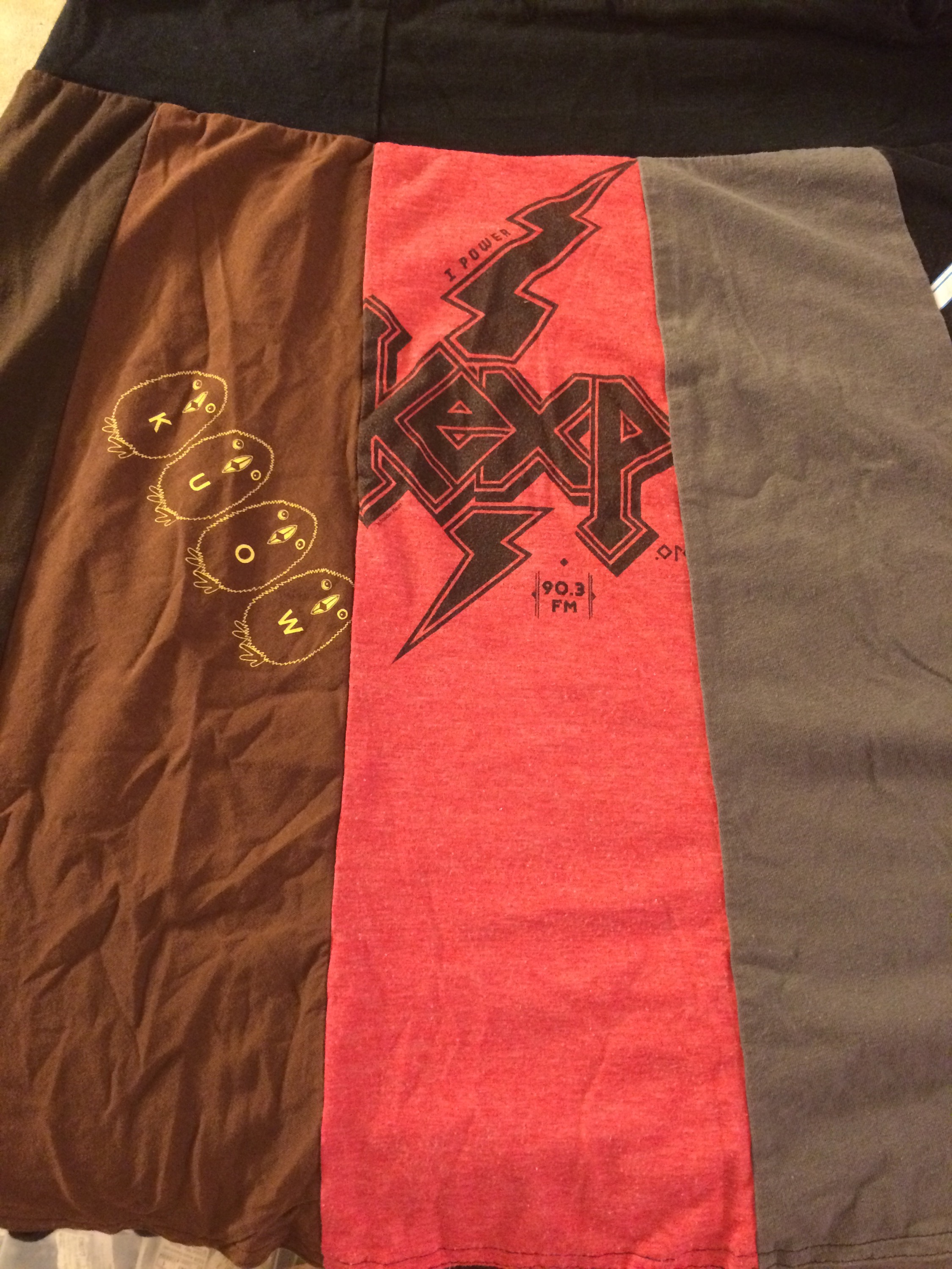 Today I want to give a shout out to BJ of Loveworn. My mom saw BJ’s work nearly two years ago just outside of Muncie. While she does a lot of different things with t-shirts, I love the skirts! And, as a girl whose t-shirt drawers are always overflowing, I was happy to find a new life for my shirts.