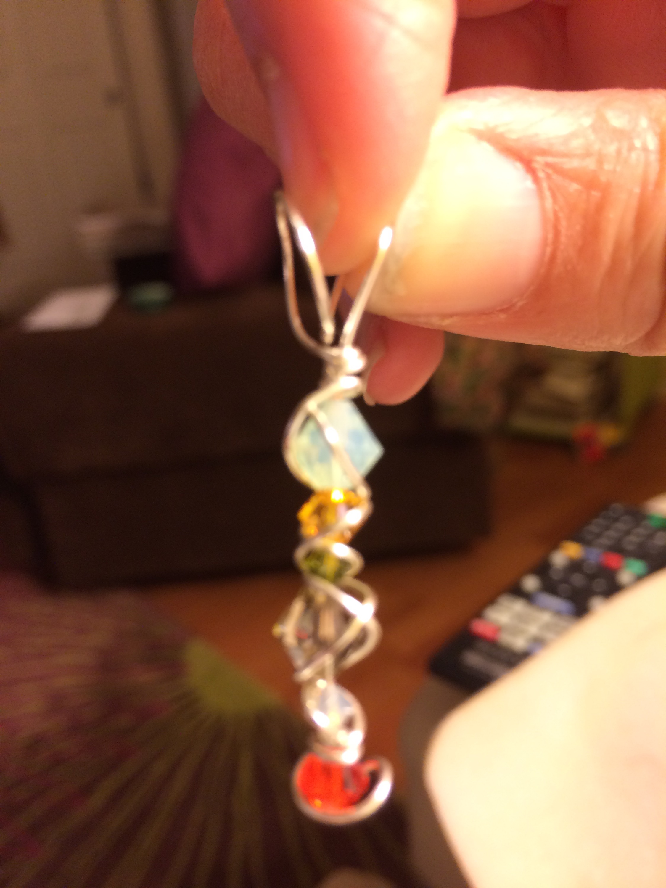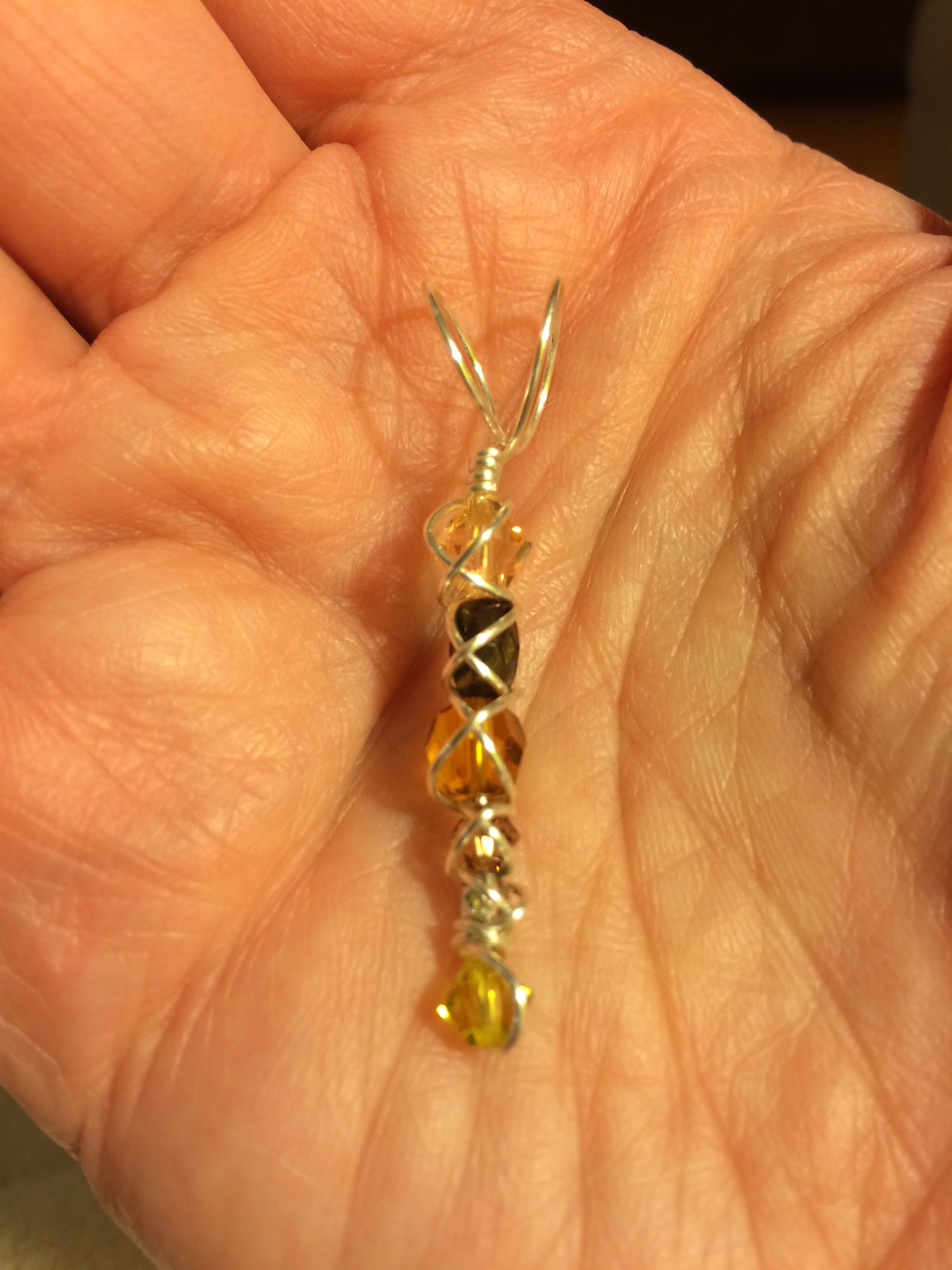 Wire working is something I fall in and out of love with a few times a year. Gayle’s swirling design are like the magical whirls of an exhilarating wind on stormy, dry evening. She makes it seem like I could never fall out of love with wonders of wire. I especially like how sometimes her designs let the wire do all of the talking. Other times fun crystals or other stones/cabachons are asking for all of the attention.