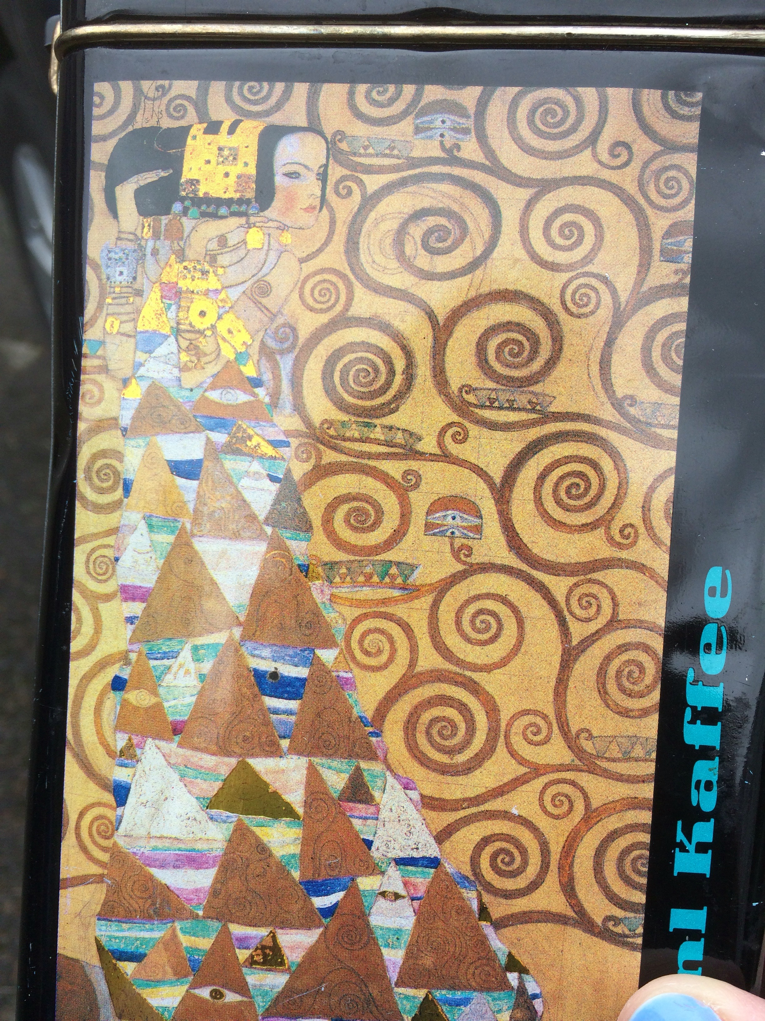 This lovely Klimt coffee tin many have to stay intact, even though these prints will make for lovely pieces.