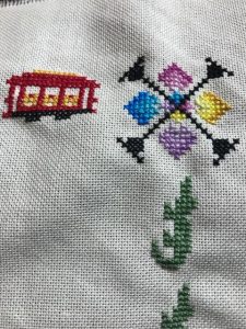 In the meantime I’ll keep dabbling and scratching that creative itch. (Most of the scratching involves slow, but steady progress on a cross stitch piece for my sister’s birthday. )Here’s a peek.