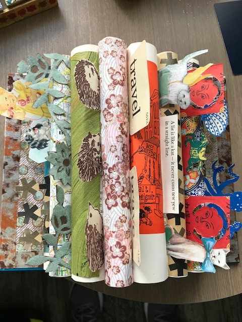 On my last full day of classes I had a book-as-art class. I was originally signed up for a class that would use tin shingles for book covers. That instructor had to cancel, so I opted for the other available book class. I was one of three students, which was actually kind of nice. We made two scroll books and something that is a more three-dimensional bit of book art.