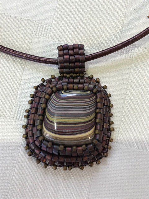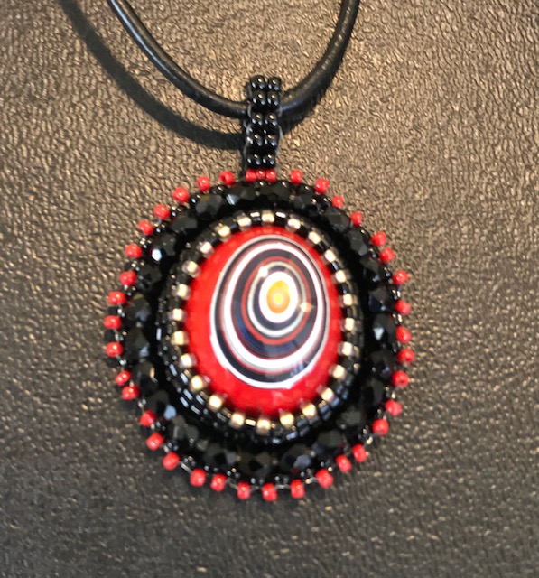 I made this at Art and Soul in March. Why didn’t I do a post about that?!Bullseye “Fordite” from a Corvette plant. Ohh …