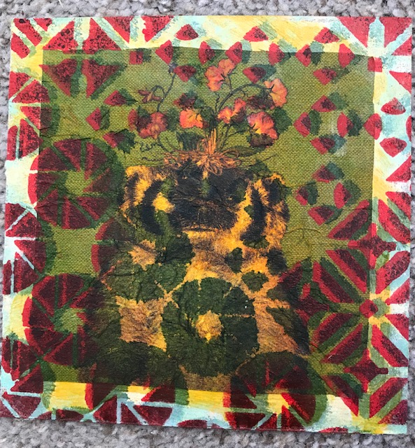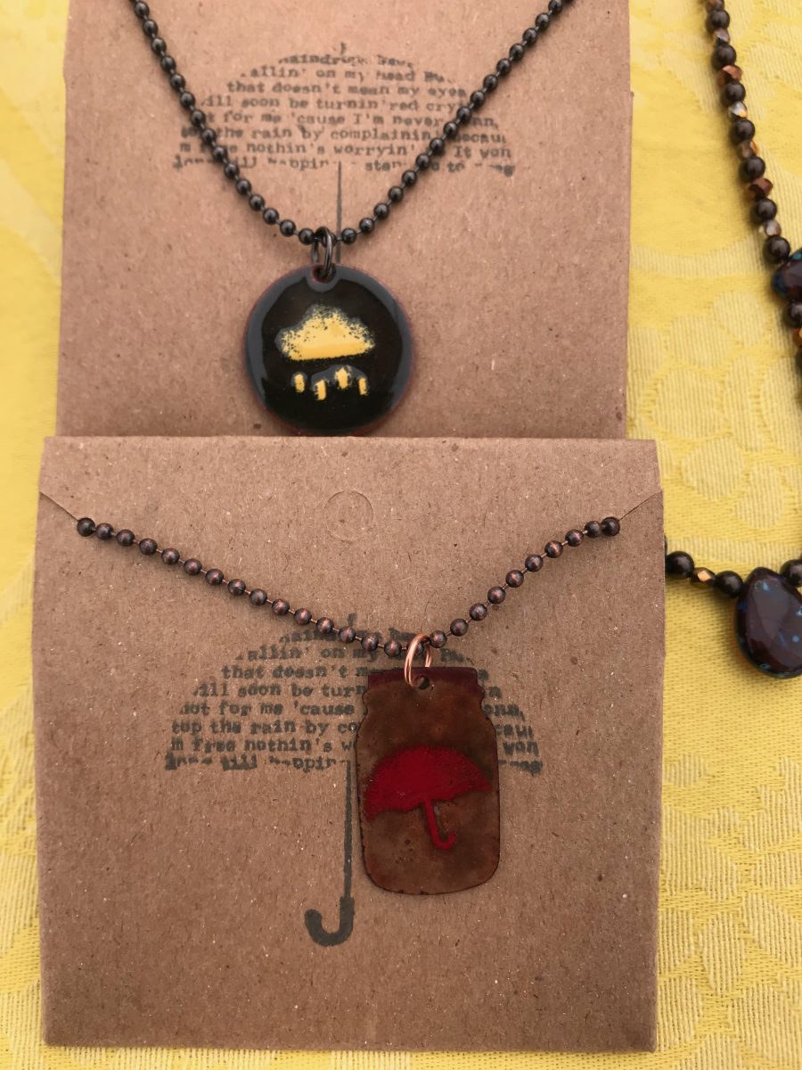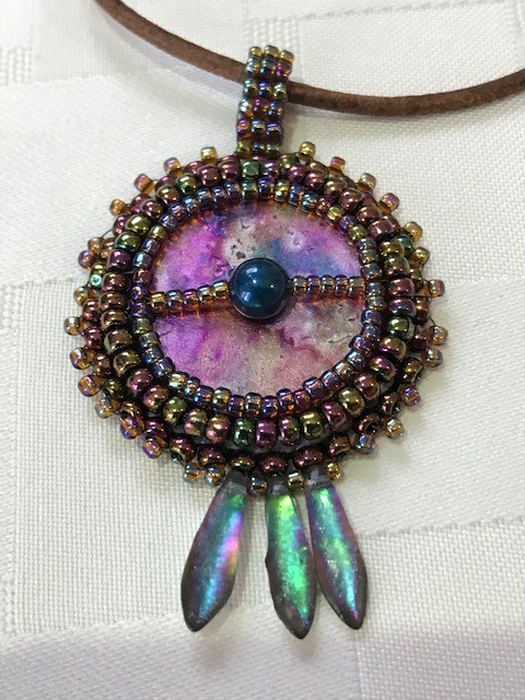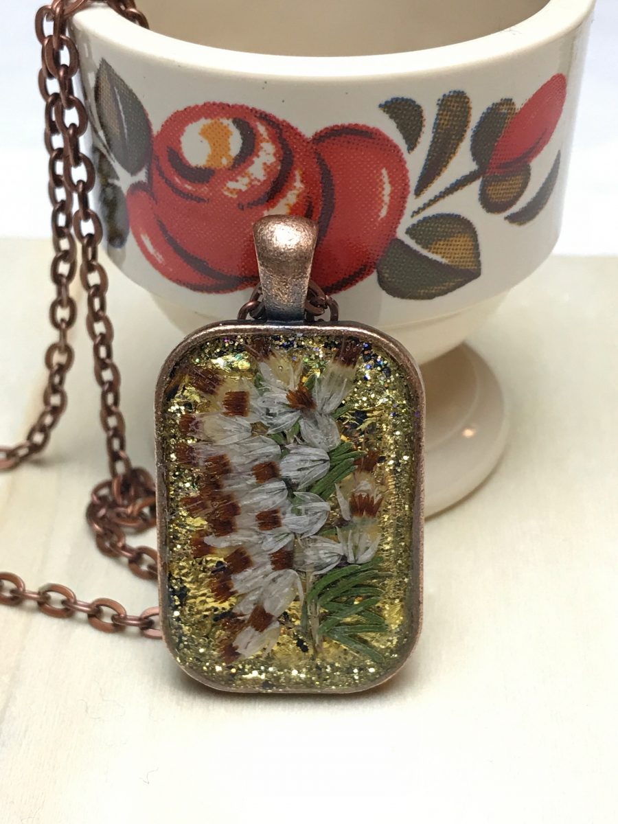 Don’t get me wrong, I have made some original pieces. I’ve stocked up on pressed-flower jewelry and more, hoping to be well prepared for next year’s market season. Although, I seem to be good at making pendants, but am struggling with doing what needs to be done to complete a project. Over the past few months I’ve dabbled with my gelli plate, polymer clay, micro mosaics and more.