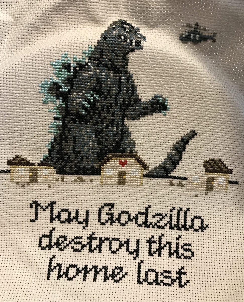 One craft I’ve gotten back to is cross stitch. I think that following a pattern offers up some comfort right now. I stitched this Godzilla, the word “vote” and I’ve picked up a rooster pattern for the first time in a long time.